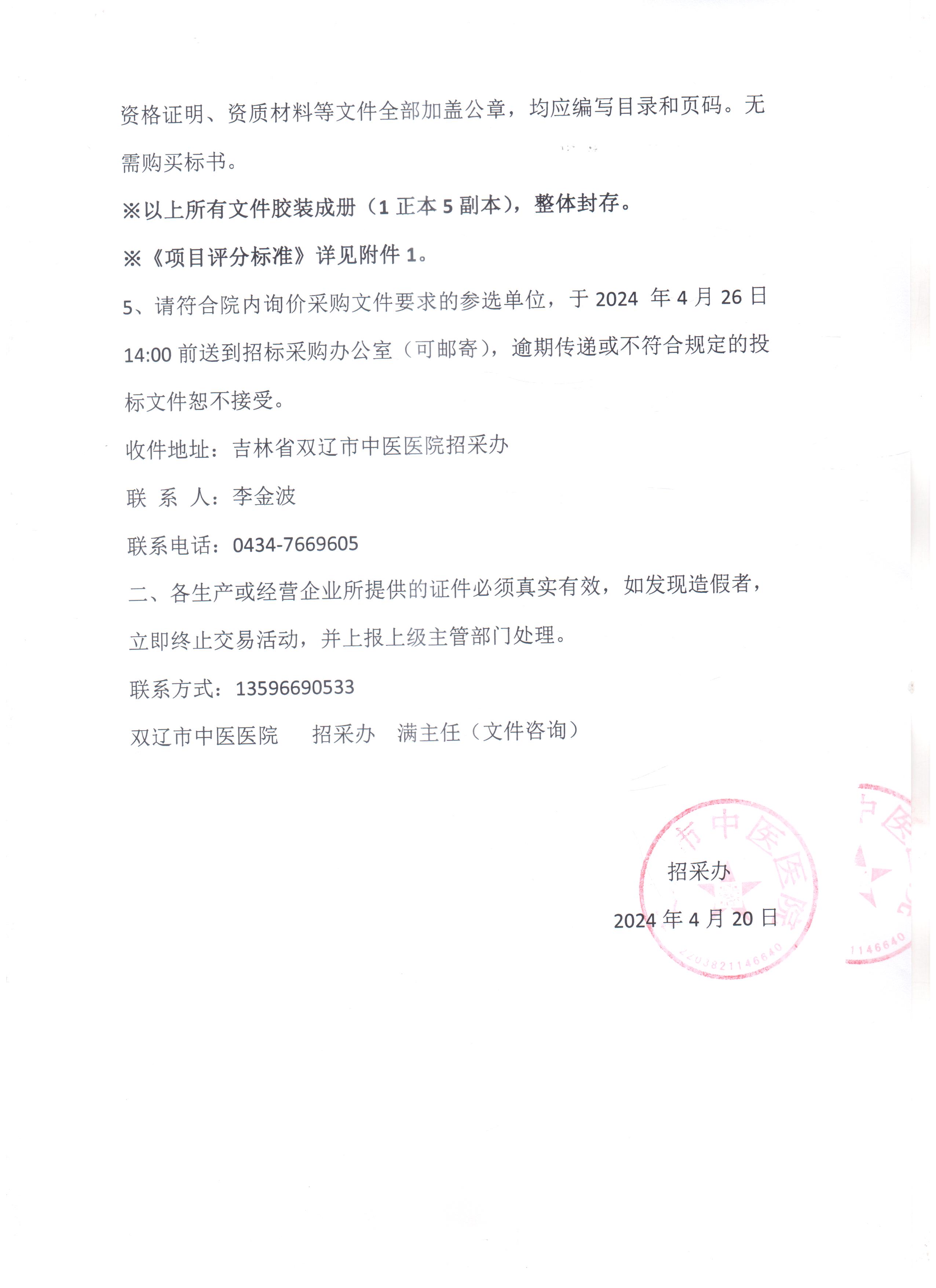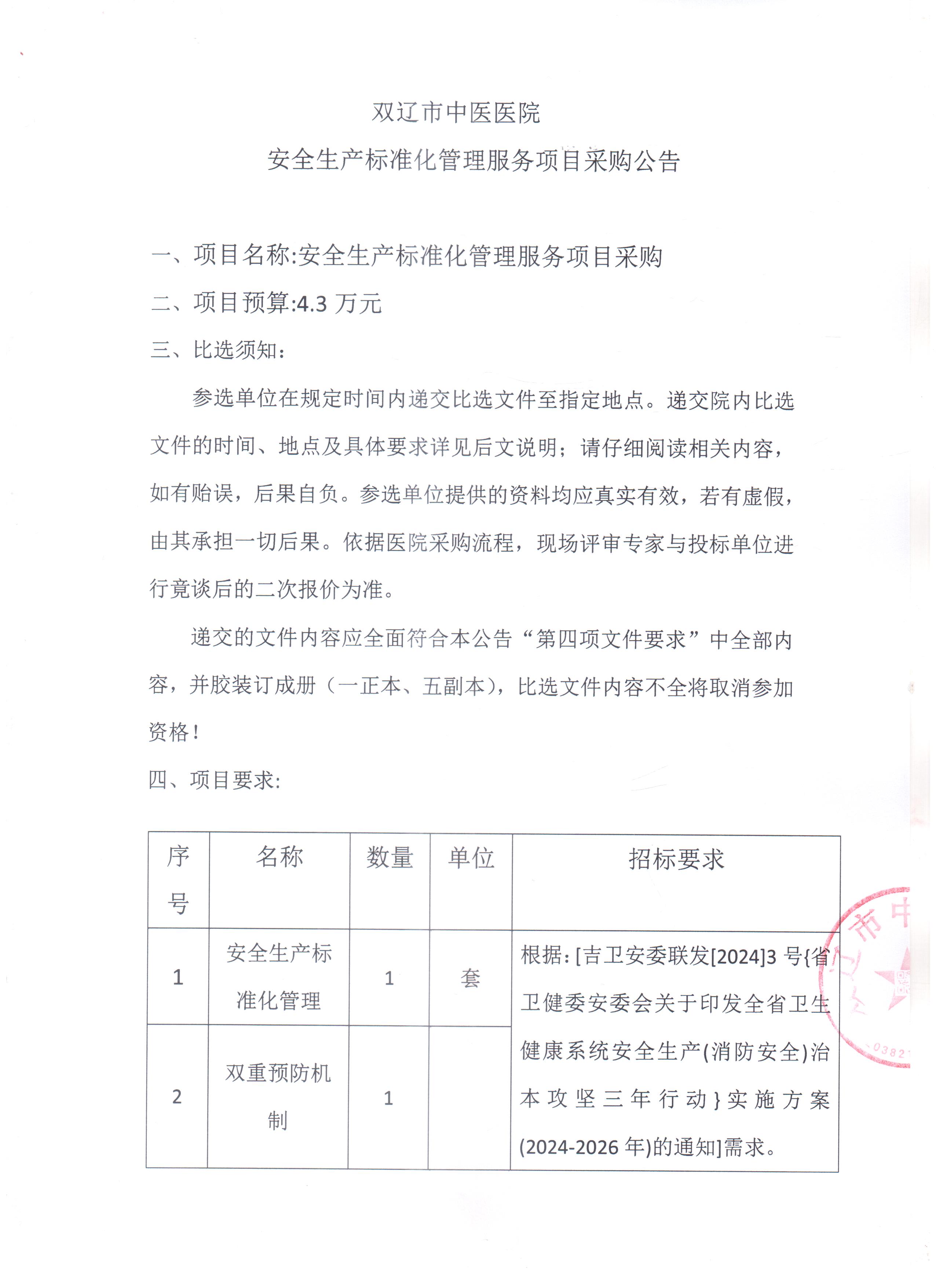 双辽市中医医院安全生产标准化管理服务项目采购公告