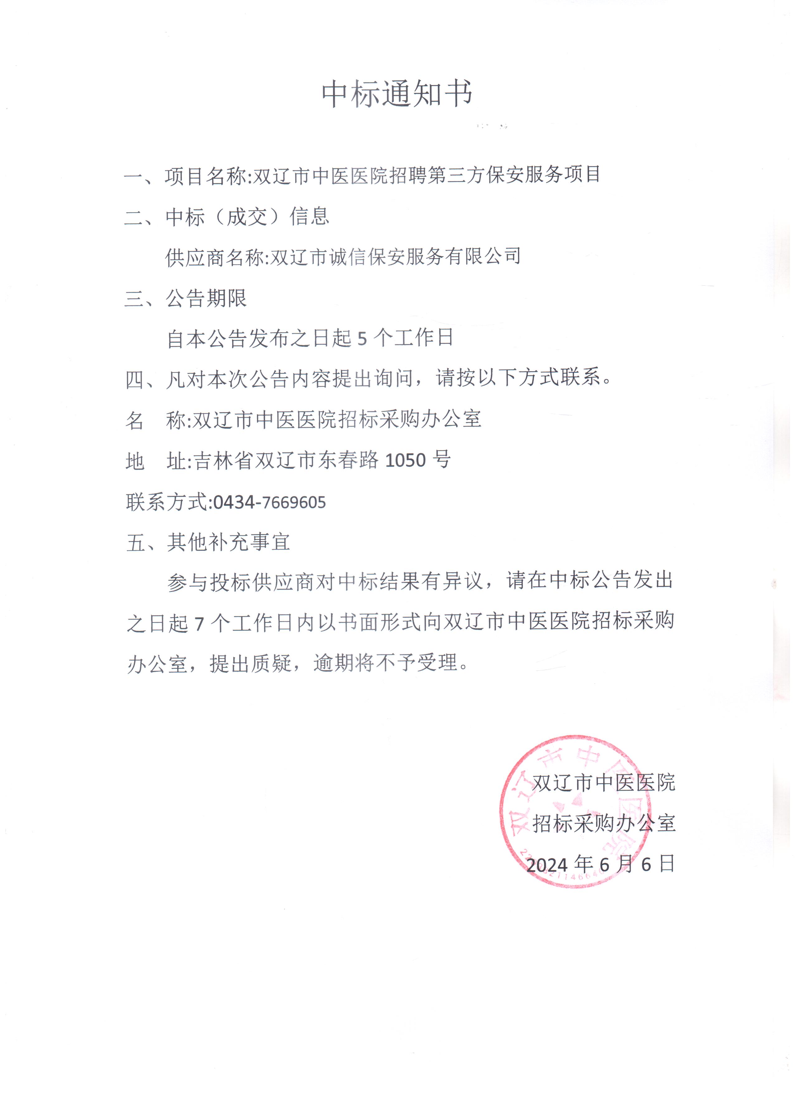 双辽市中医医院招聘第三方保安服务项目
