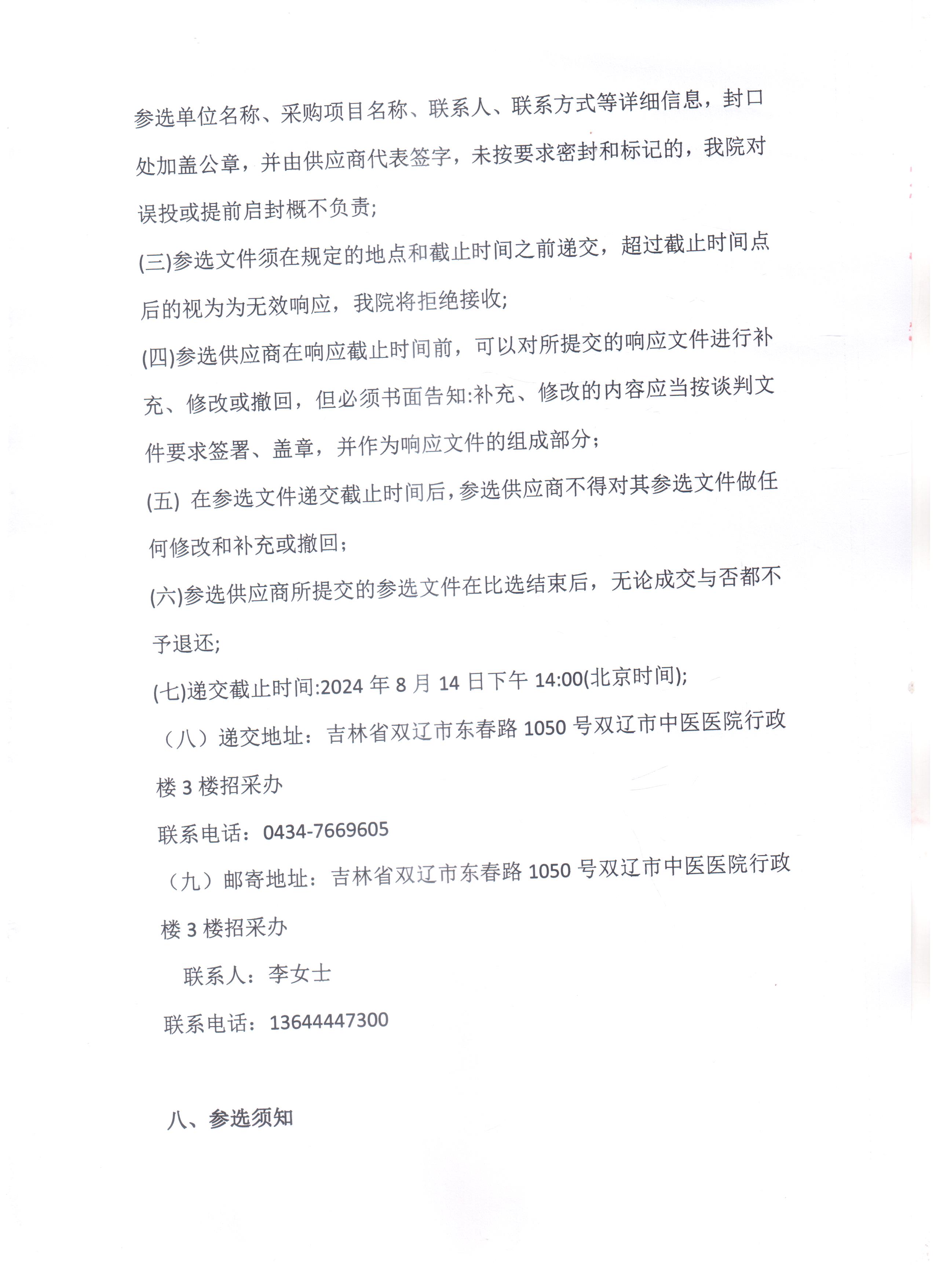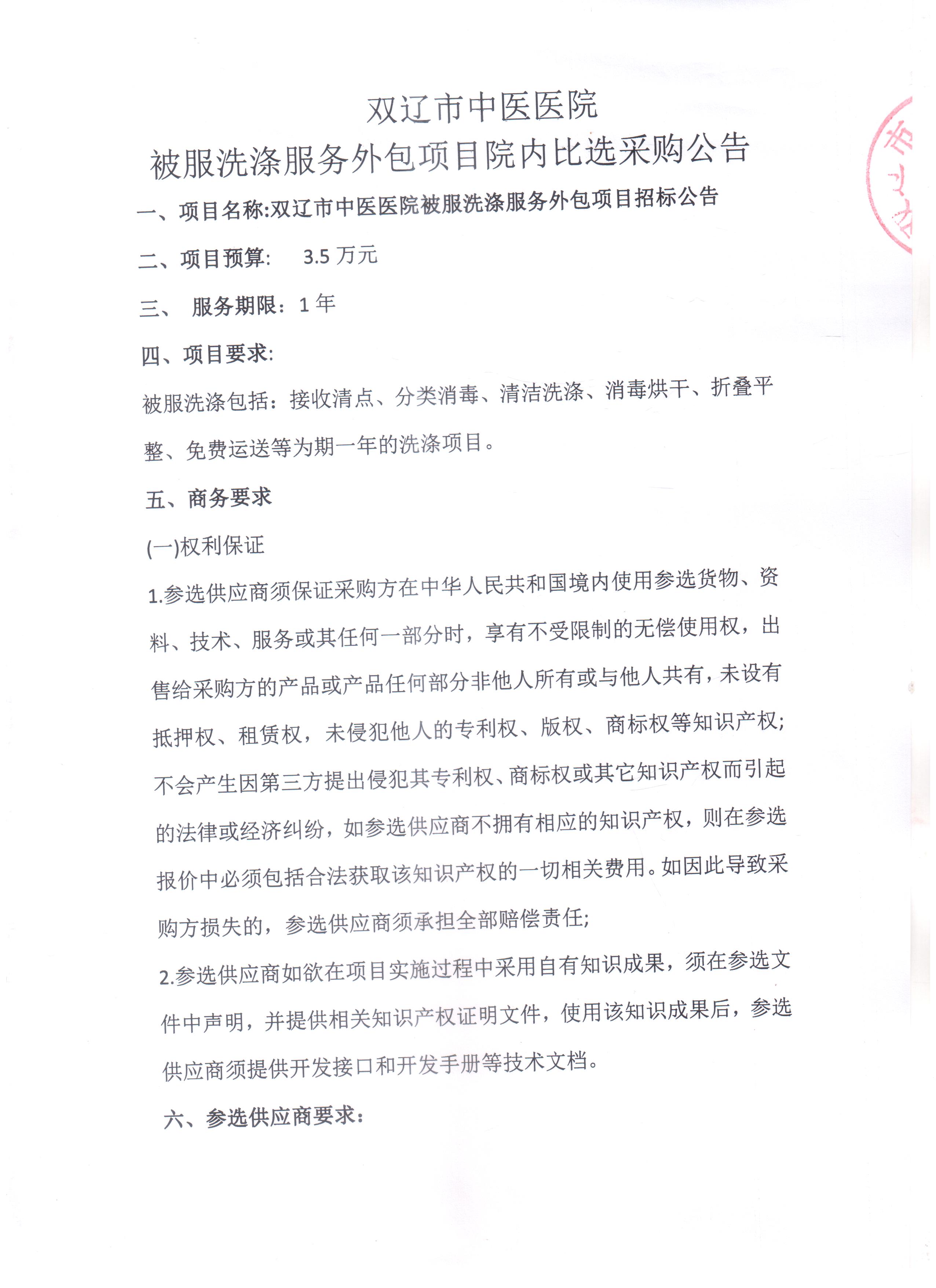 双辽市中医医院被服洗涤服务外包项目采购公告