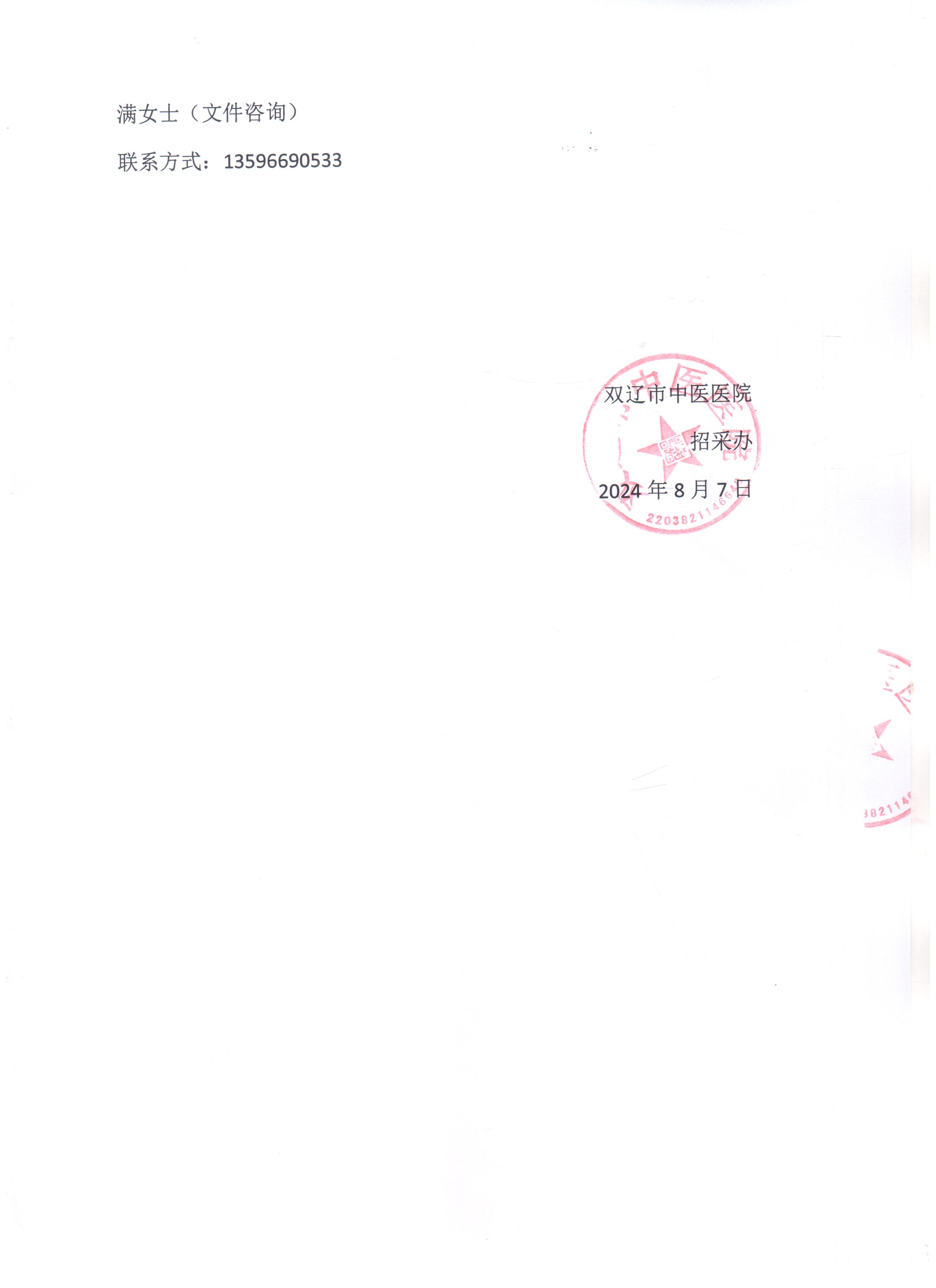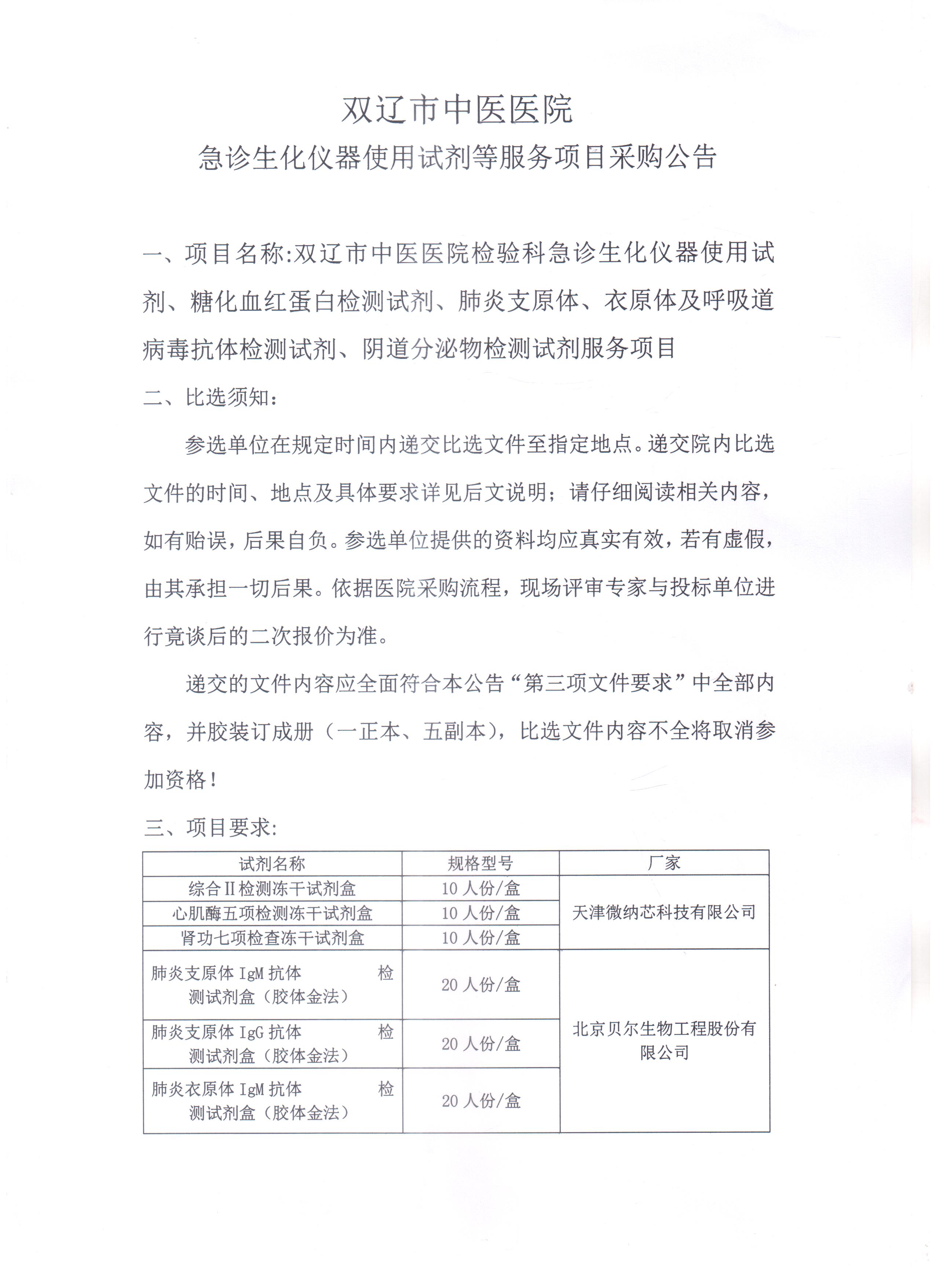 双辽市中医医院急诊生化仪器使用试剂等服务项目采购公告