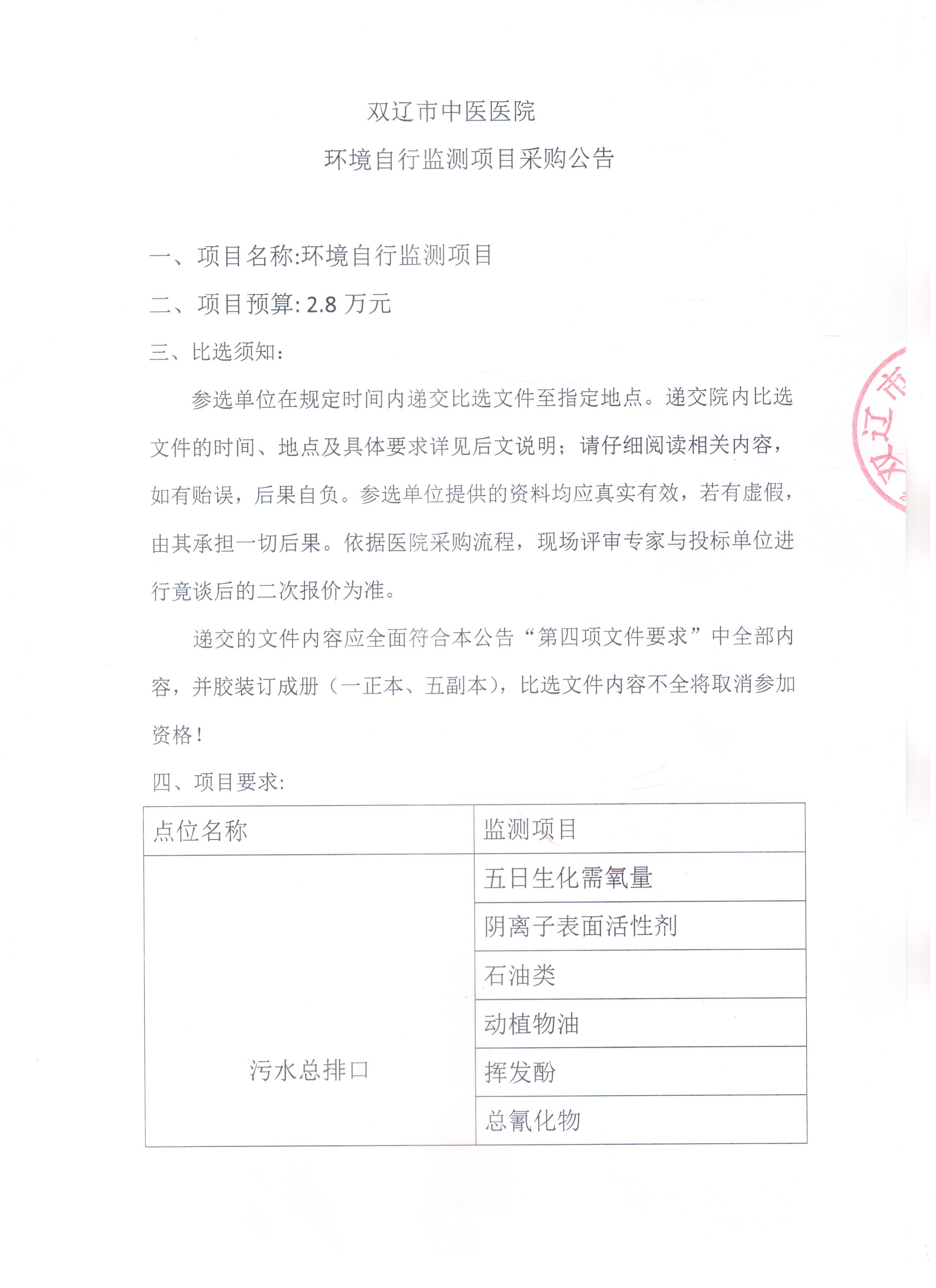 双辽市中医医院总务科环境自行监测项目采购公告