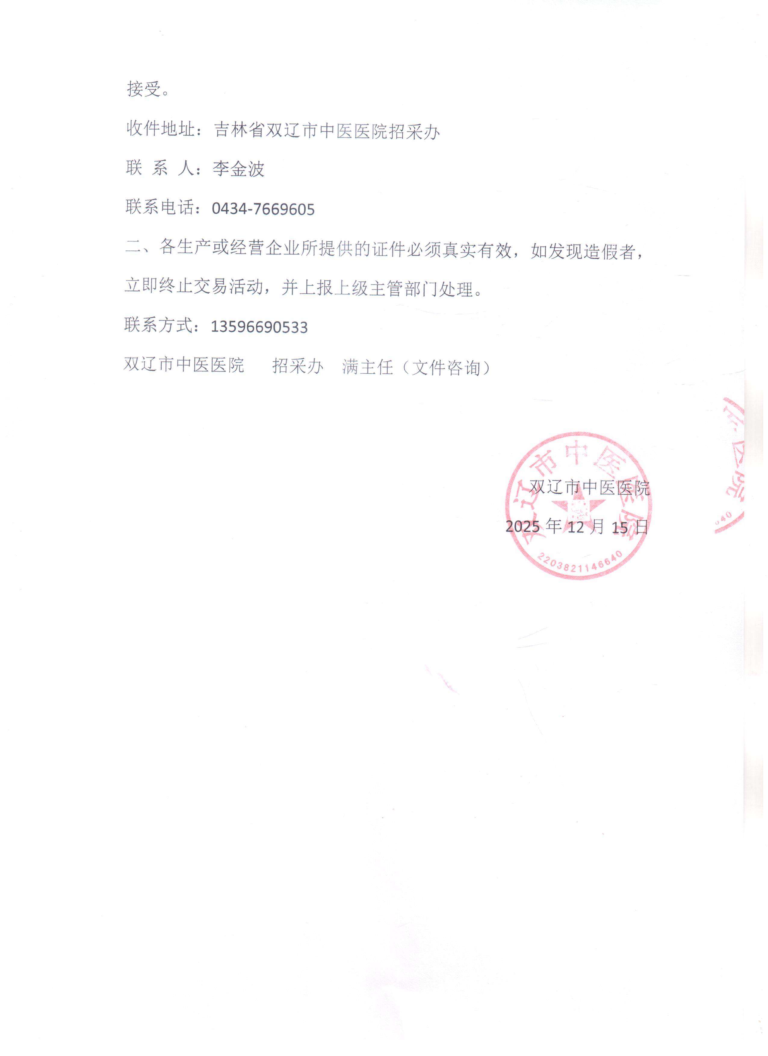双辽市中医医院总务科......