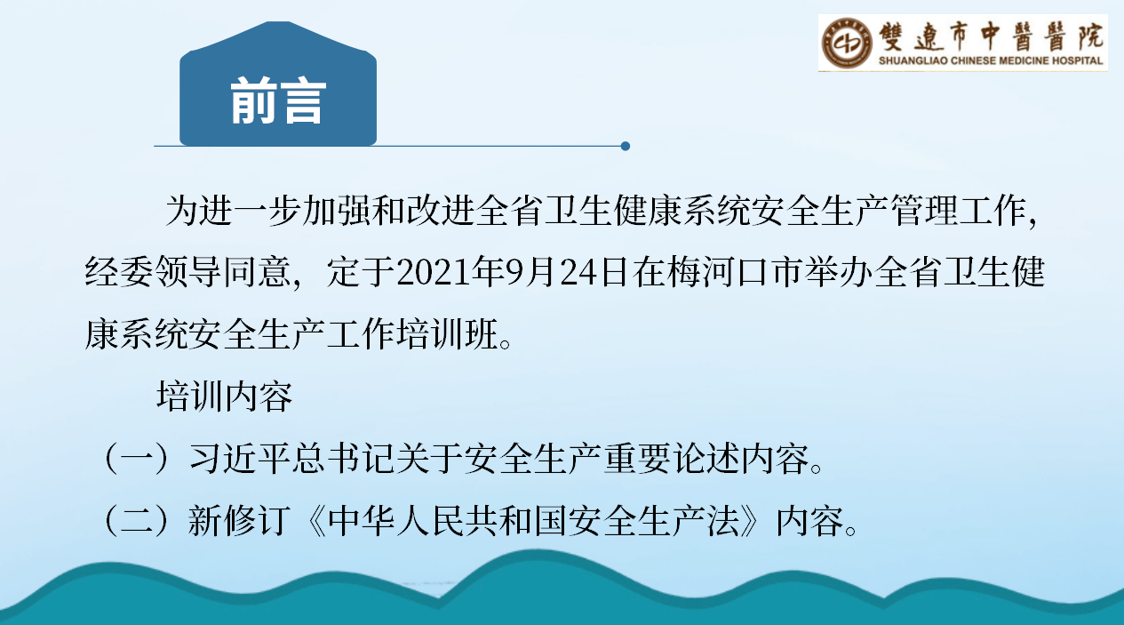 为进一步加强和改进全省卫生健康系统安全生产管理工作,经委领导同意,定于2021年9月24日在梅河口市举办全省卫生健康系统安全生产工作培训班。